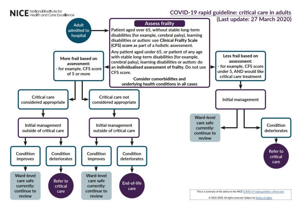 This refers to the advice issued by the ‘National Institute for Health and Care Excellence (NICE) on 20th March. The full advice can be found here: https://www.bopa.org.uk/resources/uk-nice-covid-19-rapid-guideline-critical-care-20th-march-2020/ Excerpts below.