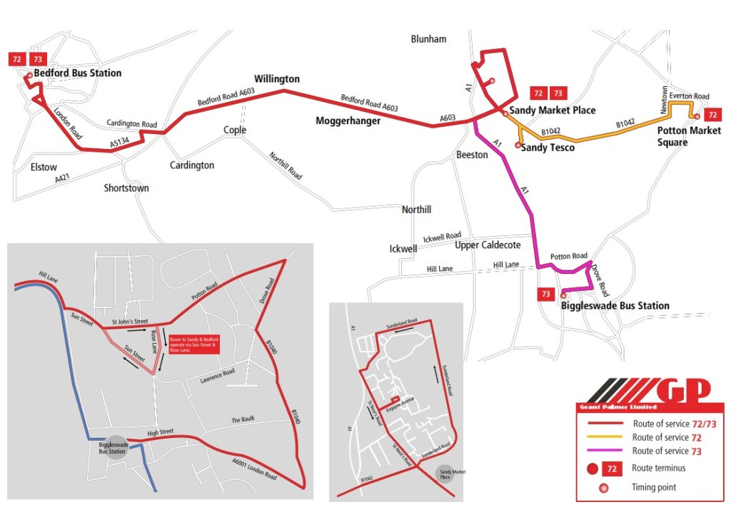 *From 22nd November Grant Palmer introduced a new timetable for the 72/73 routes which you can find in the link below: https://www.grantpalmer.com/media/2727/72-73-bedford-sandy-biggleswade-potton-201122.pdf
