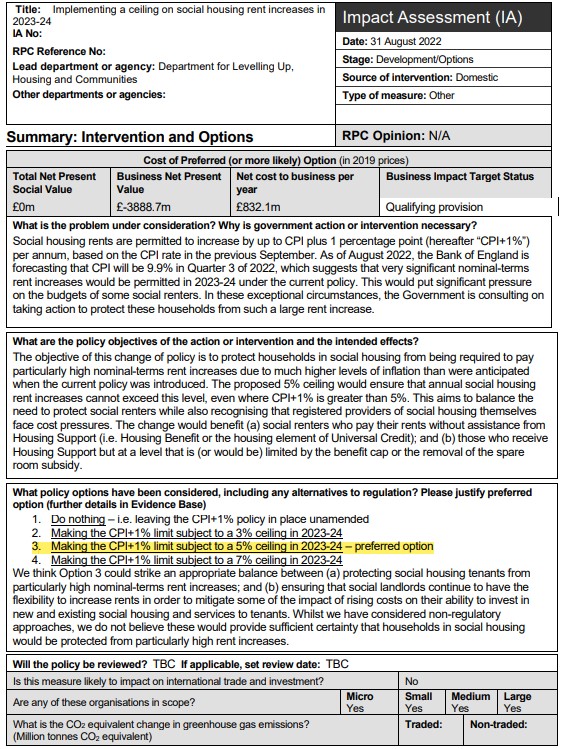Rent Cap on Social Housing Consultation Announcement: August 2022 https://www.gov.uk/government/news/rent-cap-on-social-housing-to-protect-millions-of-tenants-from-rising-cost-of-living