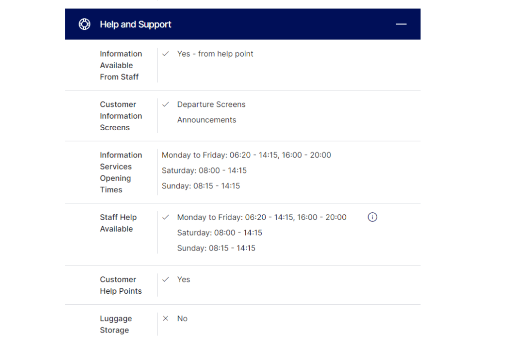 At every meeting, I have raised the issue of what the staffing levels are going to be at the station, as this could potentially impact both the availability of the lift service and the hours that the toilets are open. Once again we were not given an answer, but I got the strong impression that there will be no increase in staffing levels at the station. There did not seem to be an appreciation that an unstaffed rail network discourages people from travelling due to safety concerns, as well as making the railway inaccessible to many people. We need a complete change of culture in the area. As it stands at the moment the new toilets may only be open when the station is staffed. These hours are set out below in a screenshot from the National Rail Enquiries website.