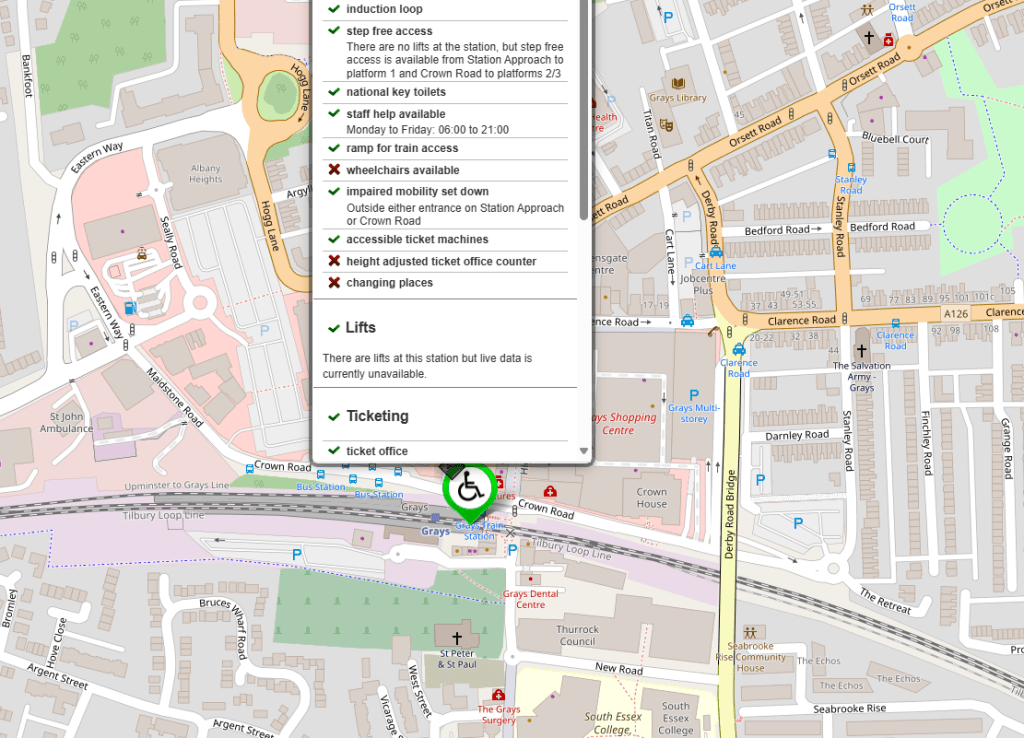 Just one example of the misinformation is Grays station, managed by c2c, where the station was described as having lifts although none are actually present. Further, the station does not have an accessibility categorisation as mandated by the Office of Rail and Road’s Accessible Travel Policy guidance. Well, it does, but the categorisation does not appear on either the National Rail Enquiries website, or the National Rail Map. Instead, it is buried under their FAQs section of their website, where it states it is a Category B station. Misleadingly, the description of accessibility at the station that they do provide, suggests that it is a Category A station. A link to my Twitter/X thread giving more detail on this here: https://x.com/julian_vaughan_/status/1820794330056966443