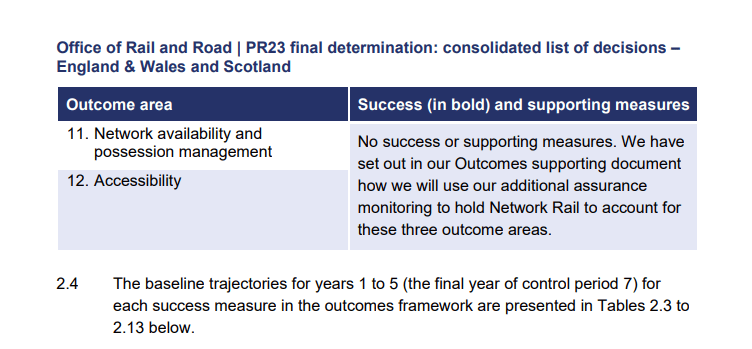 Office of Rail and Road: PR23 final determination – consolidated list of decisions: https://www.orr.gov.uk/sites/default/files/2023-11/05-pr23-final-determination-consolidated-list-of-decisions_1.pdf